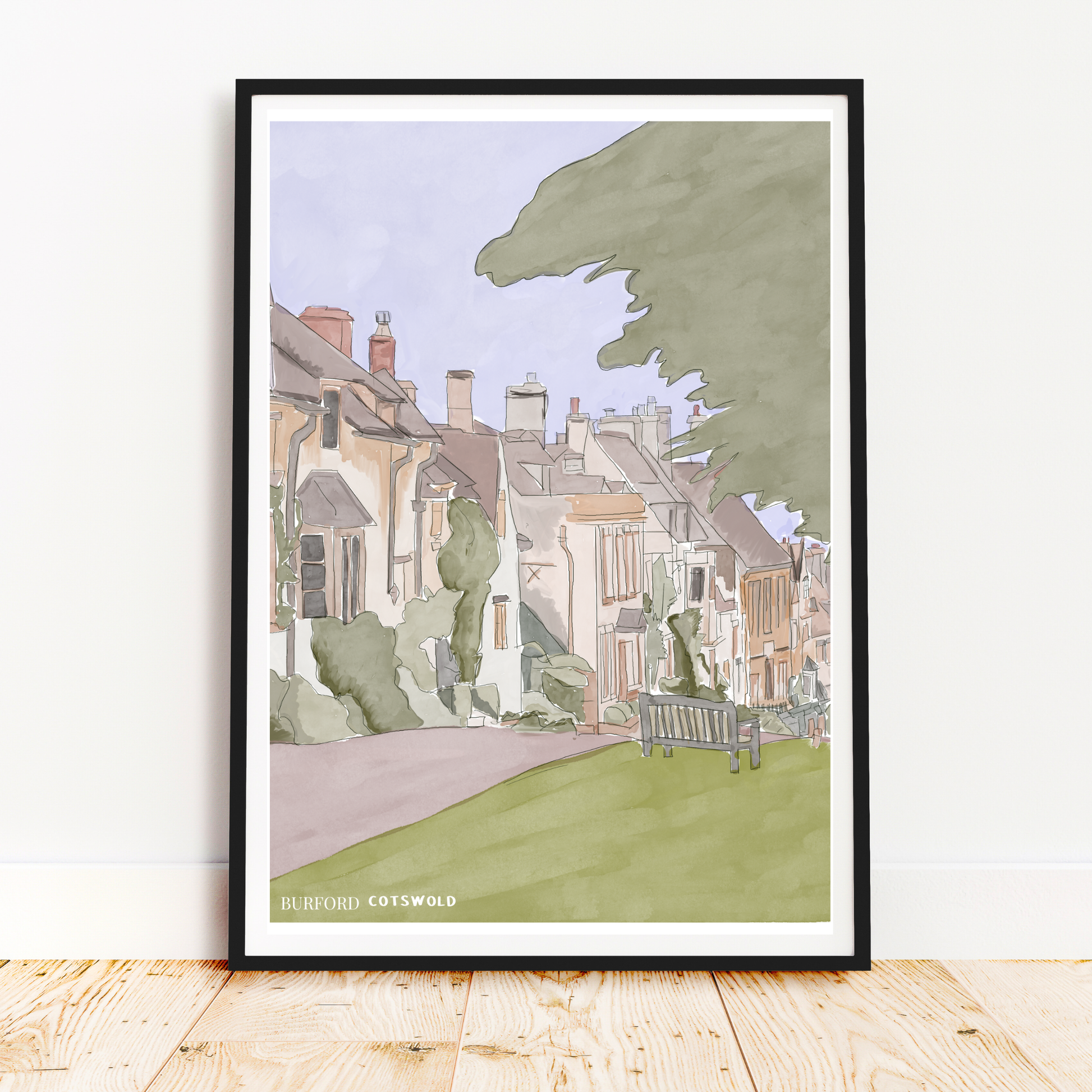Bring the beauty of the Cotswolds into your home with this illustrated art print of Burford, one of England’s most charming towns. Inspired by its honey-stone cottages, winding high street, and timeless character, this artwork captures the peaceful essence of the English countryside.