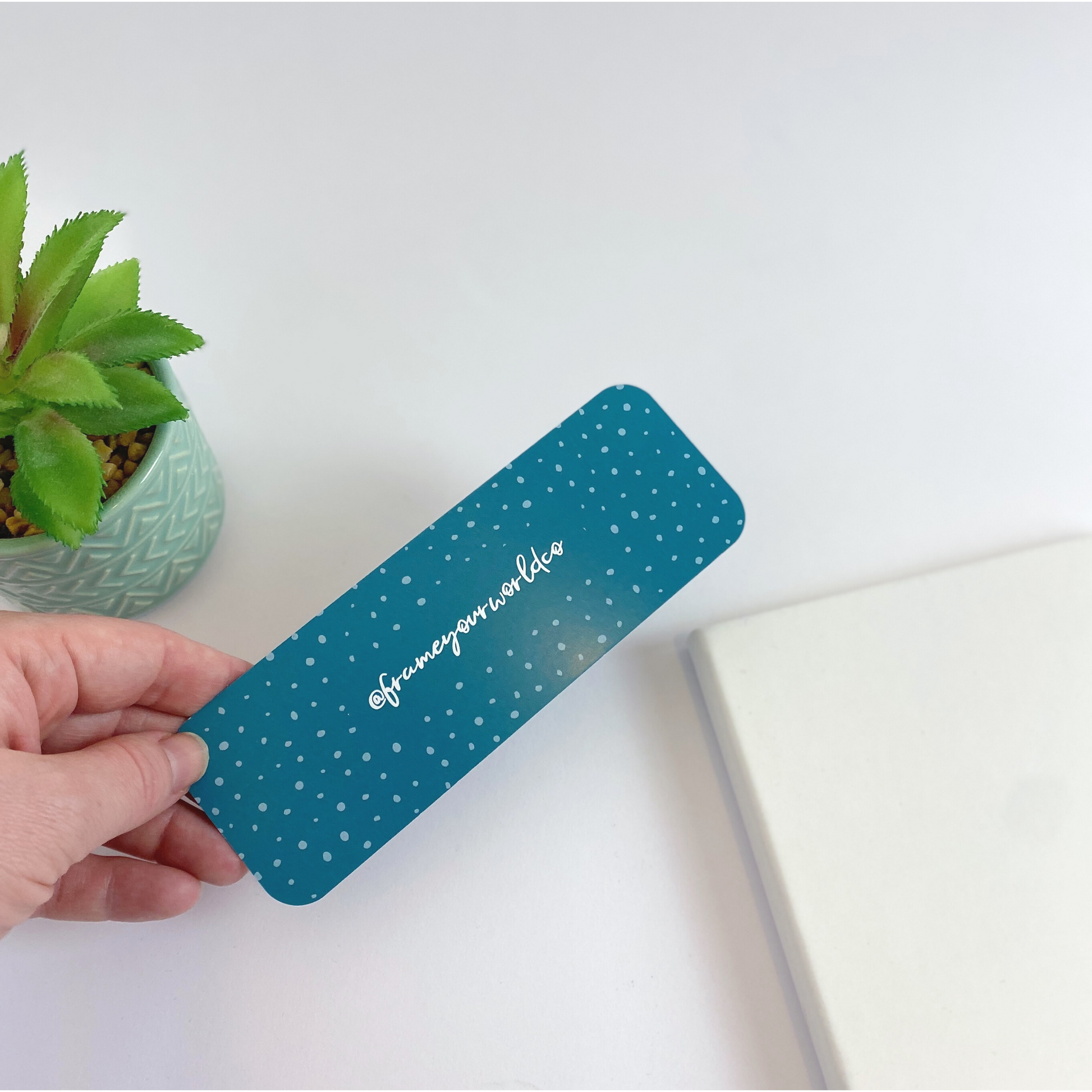 - Double sided; One side with a illustration, the back features the Frame Your World Branding