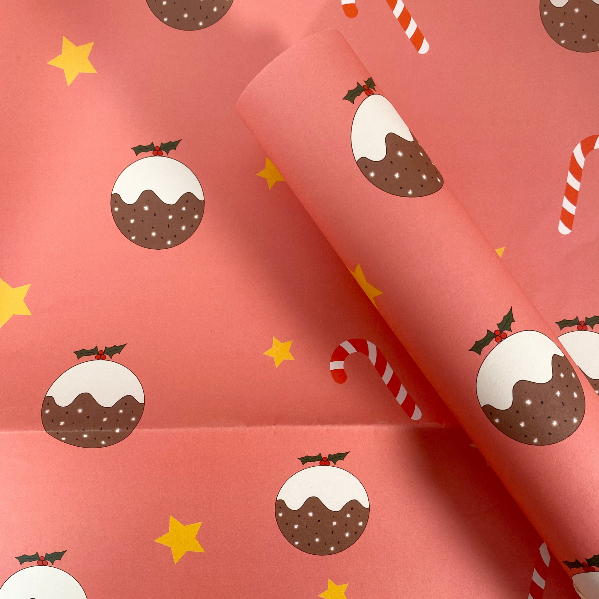 This classic Pudding & Candy Cane Wrapping Paper is the perfect choice for your gift-giving needs this holiday season. With its sophisticated and tasteful pattern, this delightful wrapping paper adds a touch of opulence to any present. Give your gifts the attention they deserve this year with this eye-catching, festive wrapping paper.