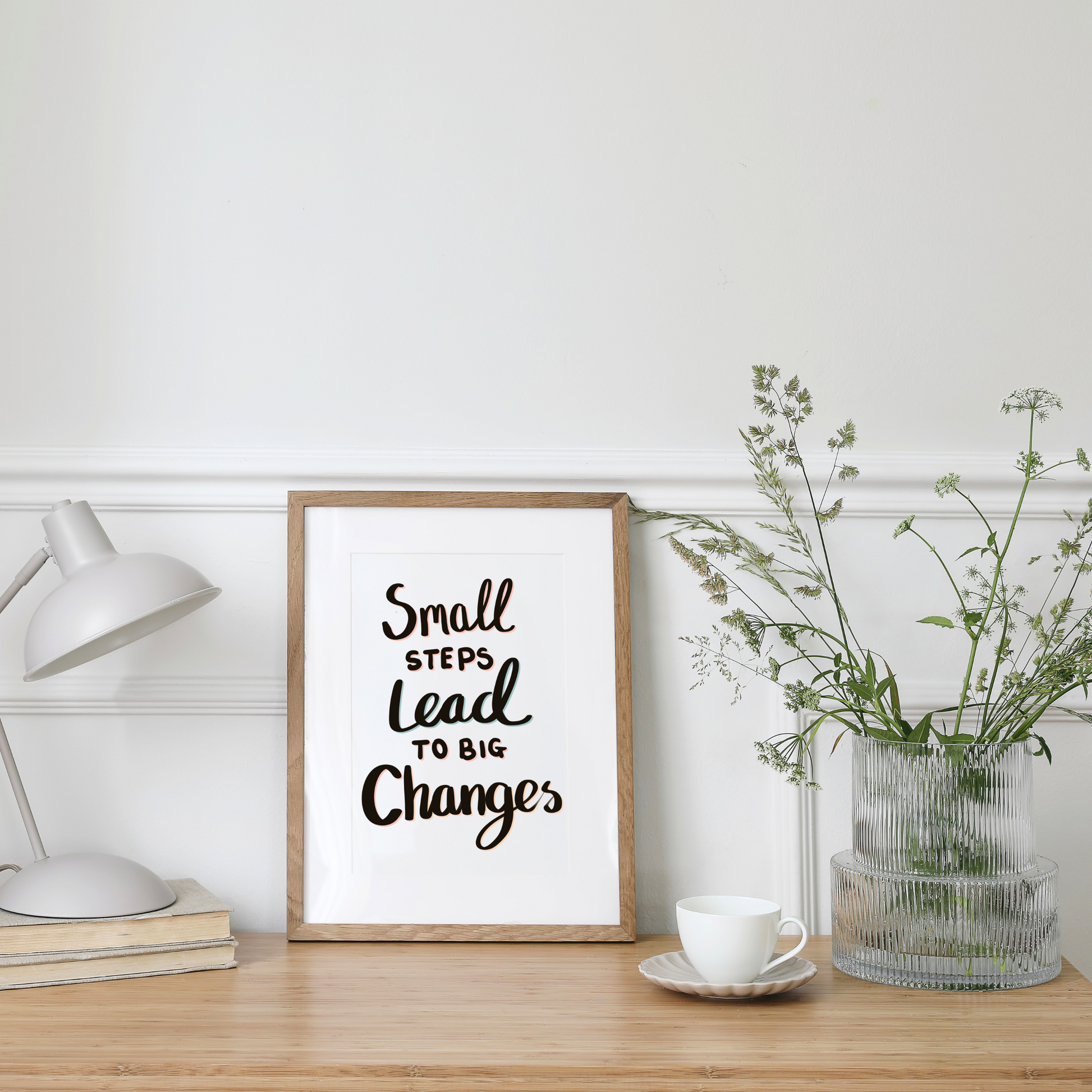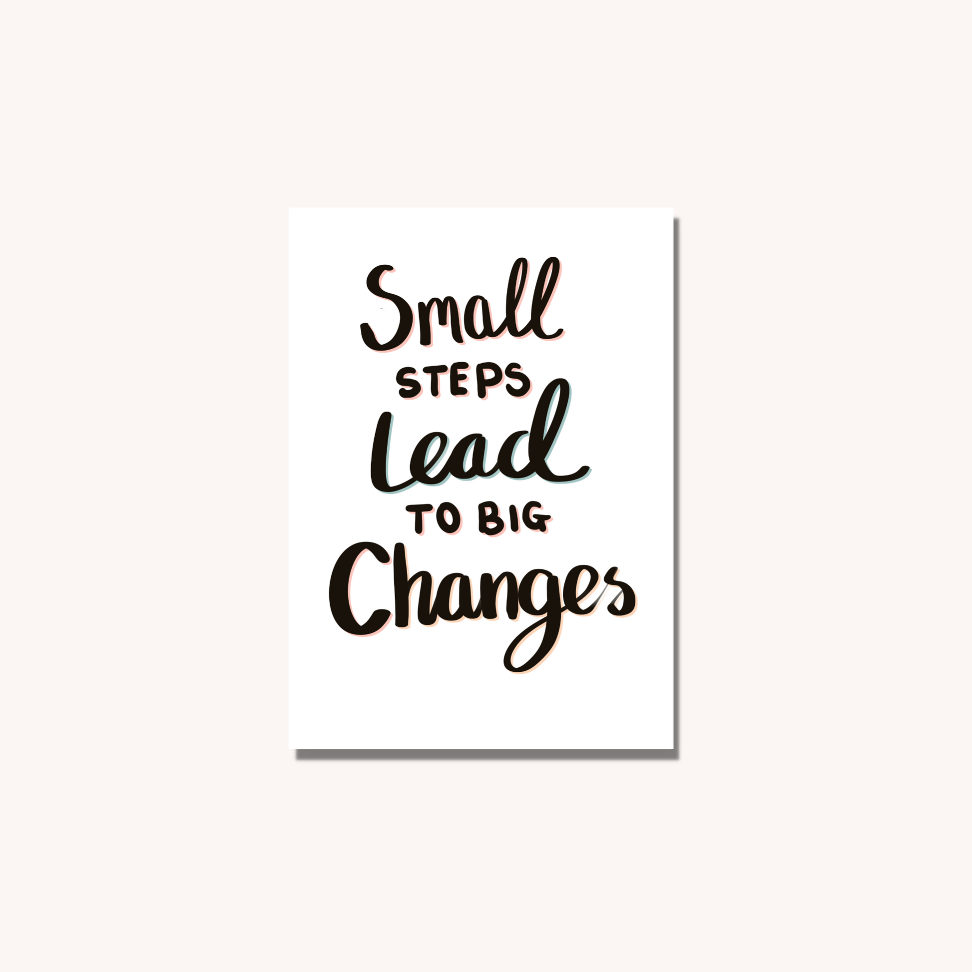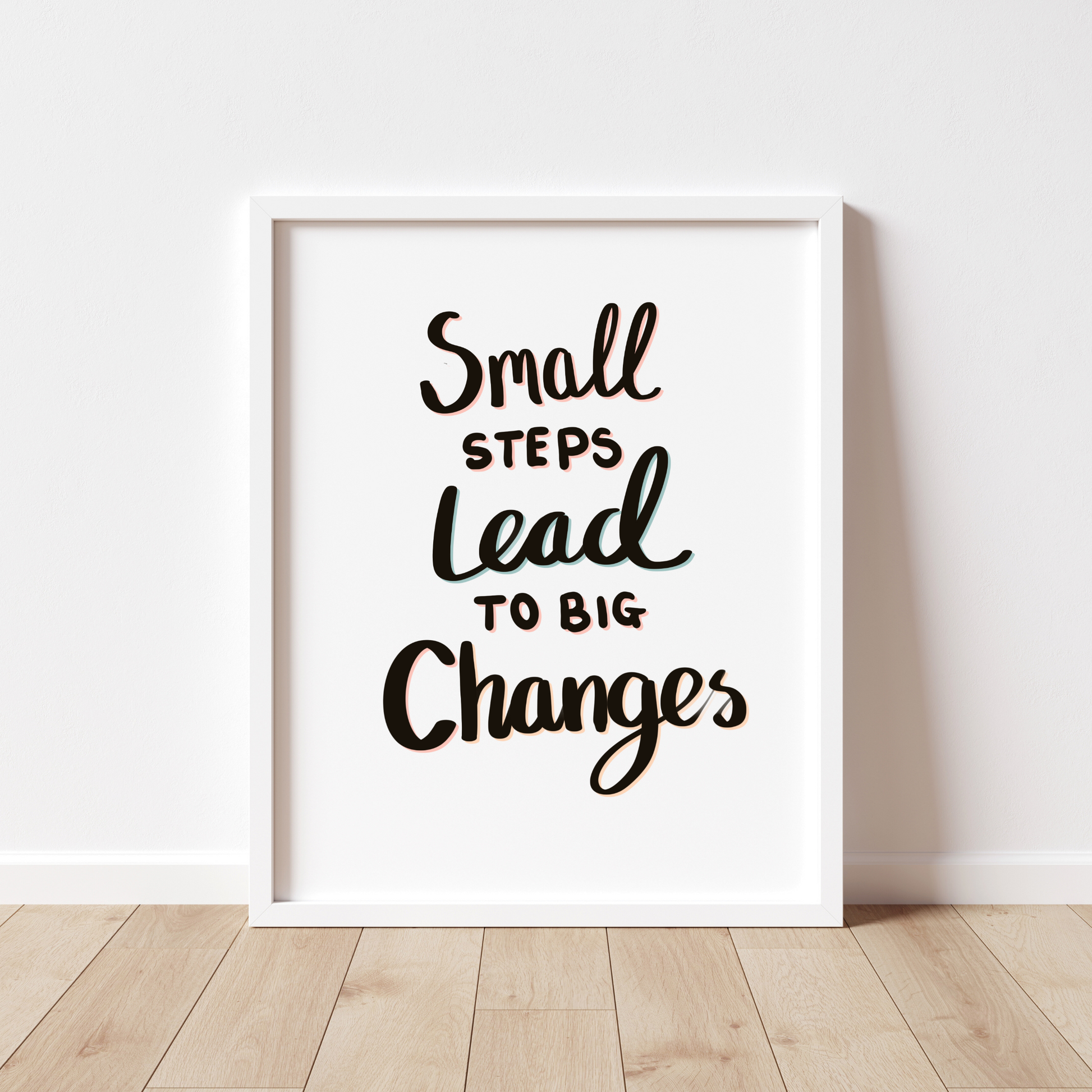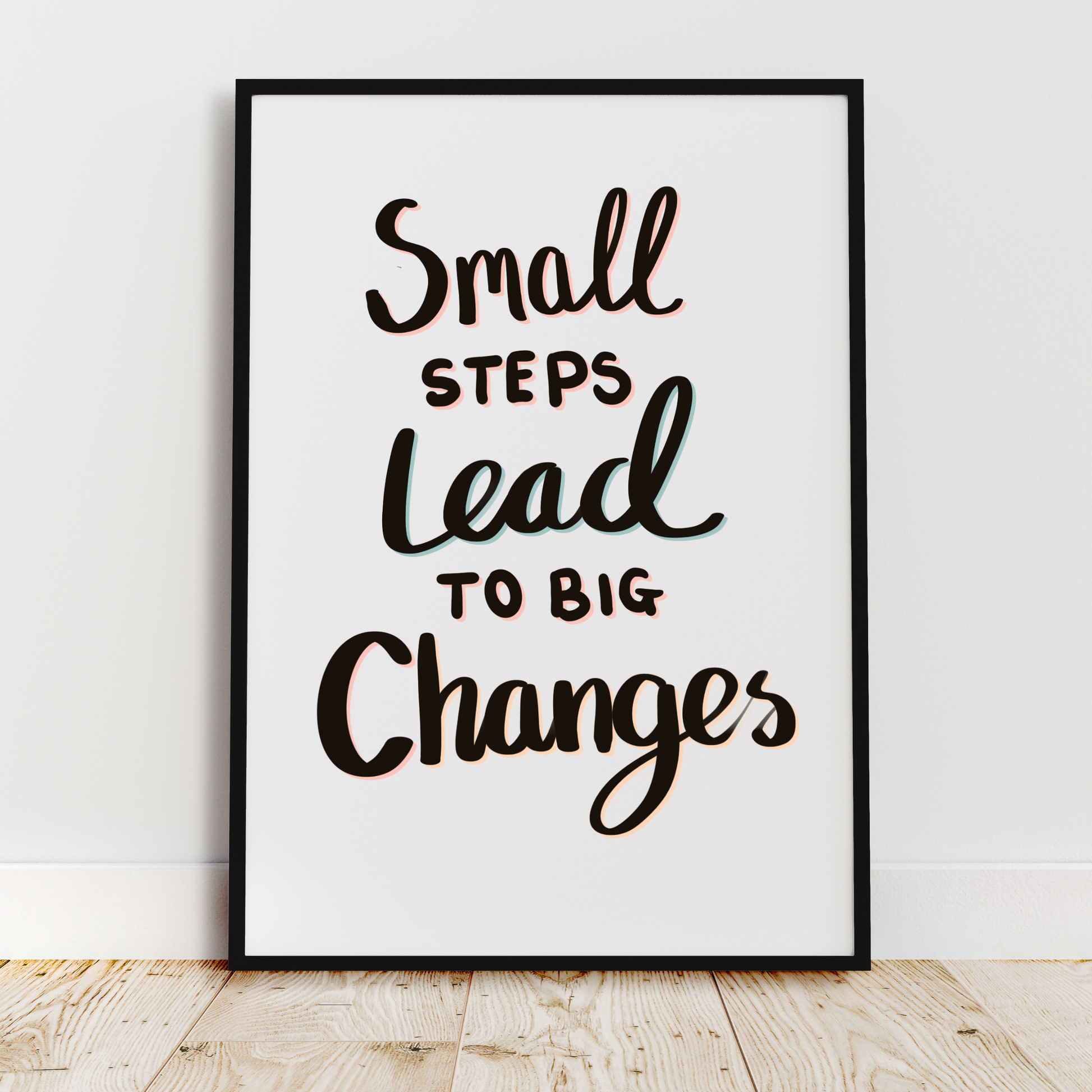 This illustrated print emphasises the power of small steps towards big changes. A motivational piece for any aspiring individual. Transform your daily routine into a journey of personal growth and success! With this beautiful illustration, you'll be reminded that every small step you take has the potential to lead to big changes in your life. Let it be a constant source of motivation for all your aspirations and goals.